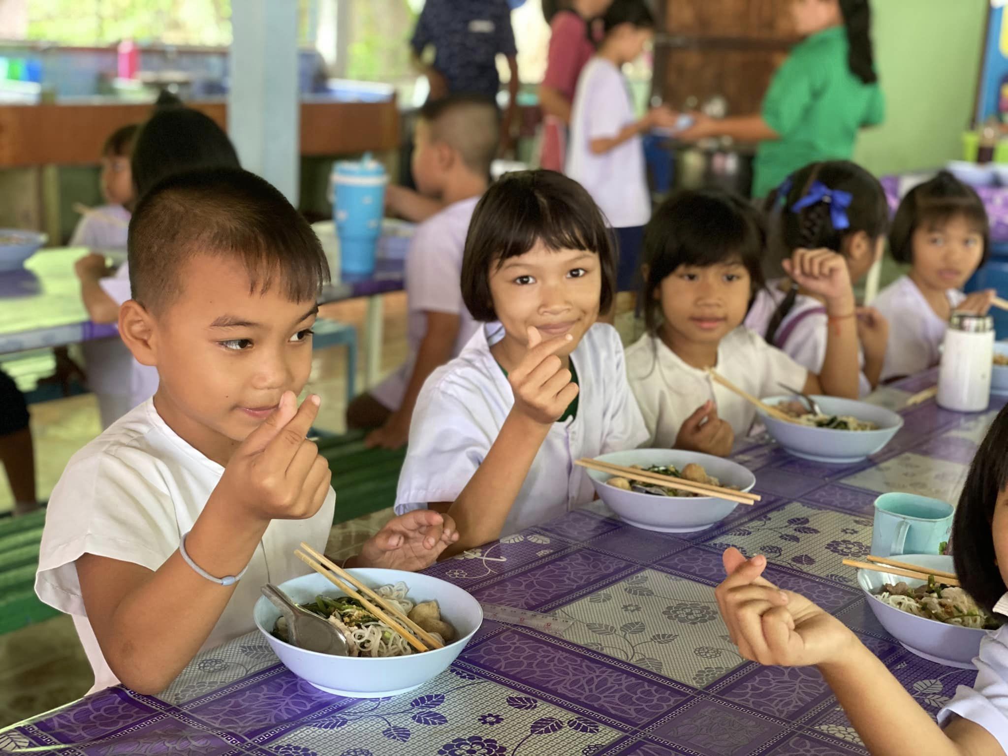 โรงเรียนบ้านไทยสามัคคี ได้อิ่มท้องกันถ้วนหน้าคณะครูและนักเรียนโรงเรียนบ้านไทยสามัคคี