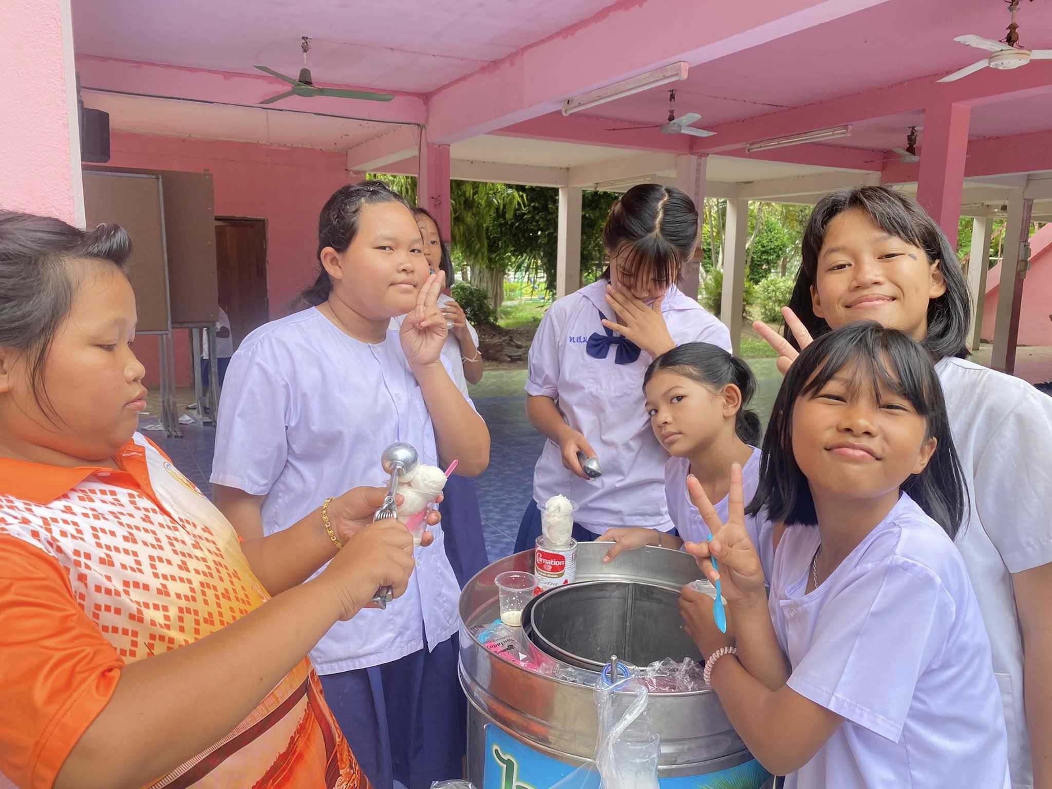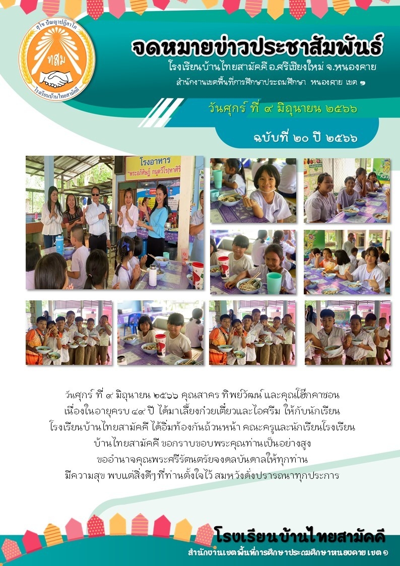 เนื่องในอายุครบ 49 ปี ได้มาเลี้ยงก๋วยเตี๋ยวและไอศรีม ให้กับนักเรียน