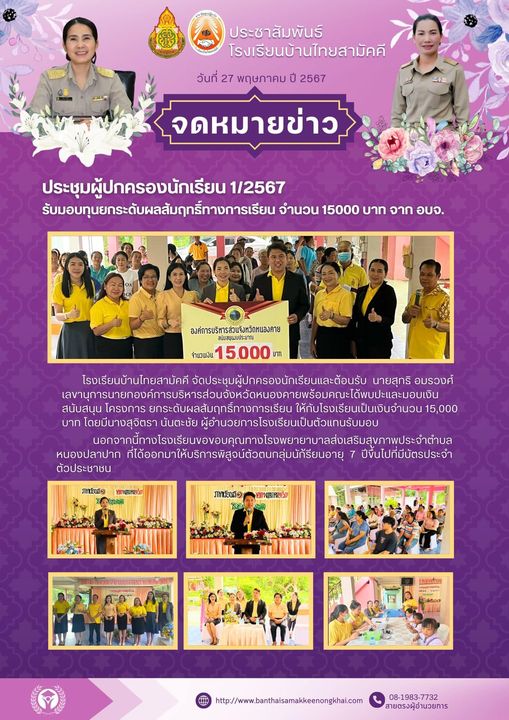 โรงเรียนบ้านไทยสามัคคี จัดประชุมผู้ปกครองนักเรียนและต้อนรับ นายสุทธิ อมรวงศ์