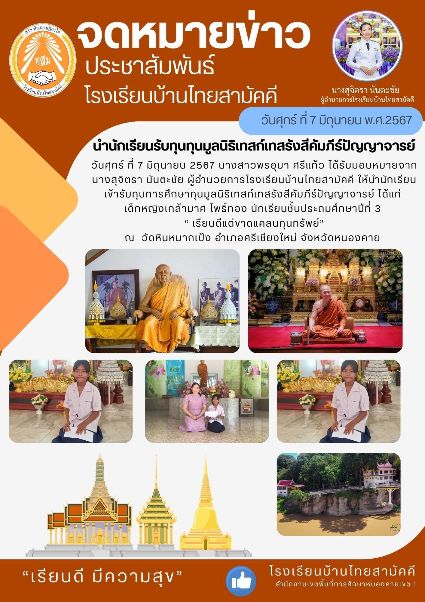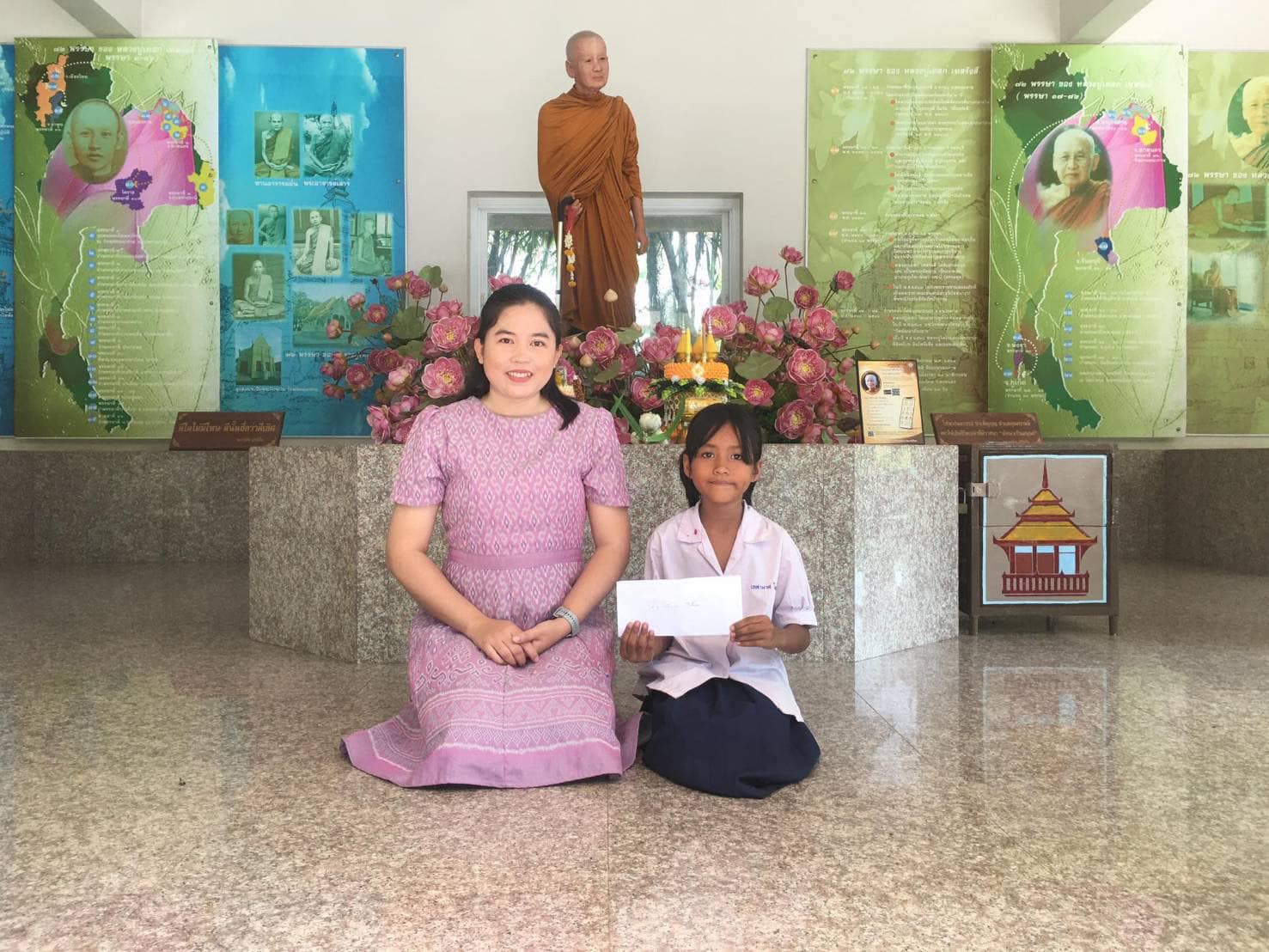 นางสุจิตรา นันตะชัย ผู้อำนวยการโรงเรียนบ้านไทยสามัคคี ให้นำนักเรียนเข้ารับทุนการศึกษาทุนมูลนิธิเทสก์เทสรังสี