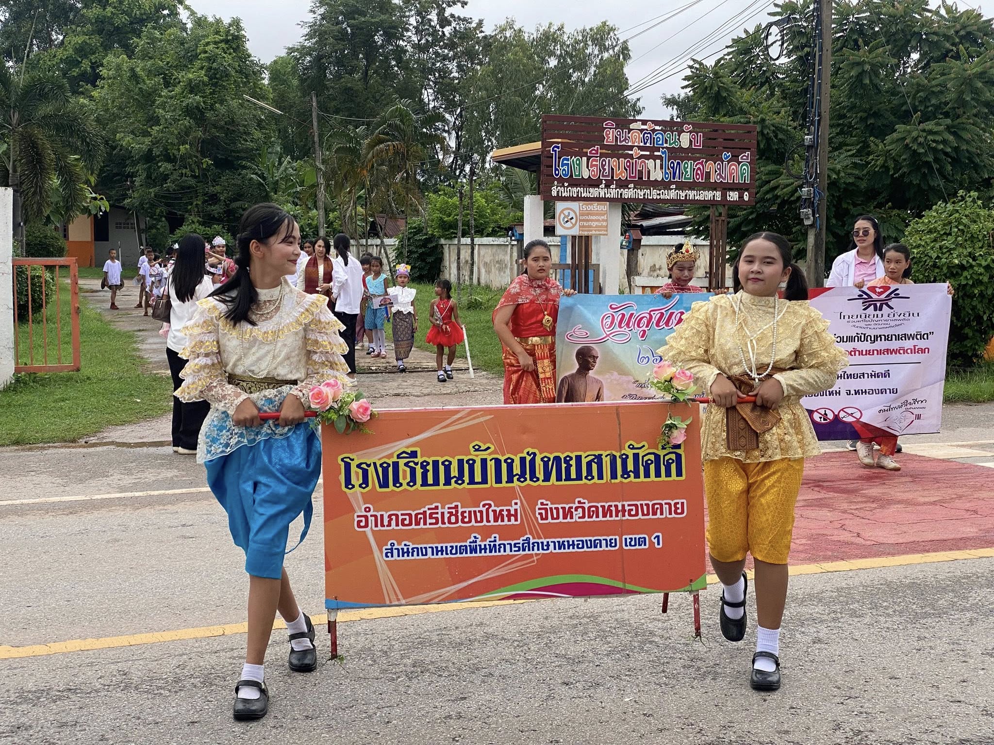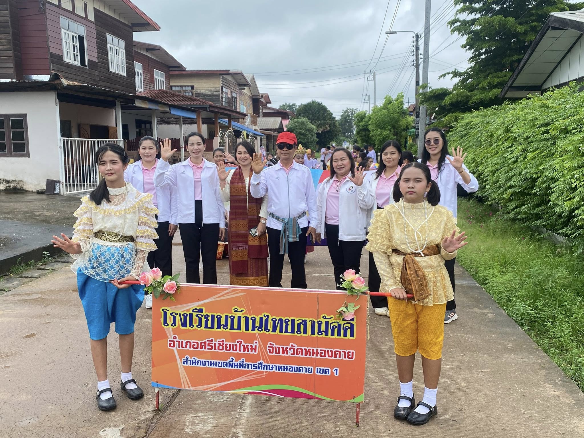 นางสุจิตรา นันตะชัย ผู้อำนวยการโรงเรียนบ้านไทยสามัคคี นำคณะครูและนักเรียน
