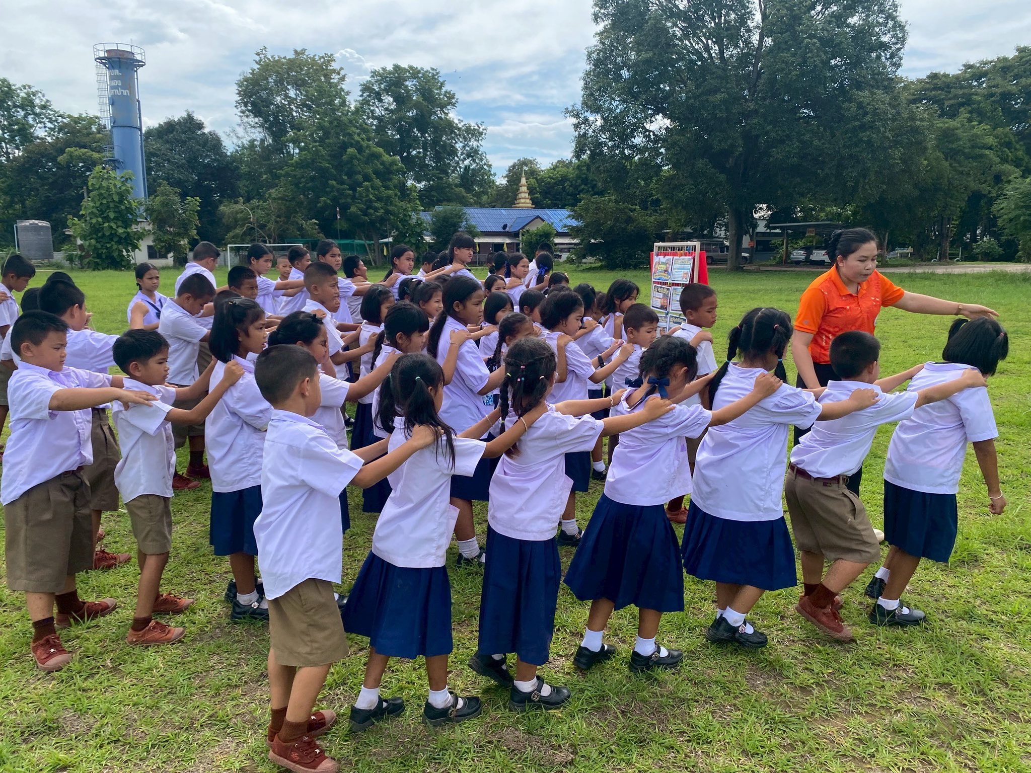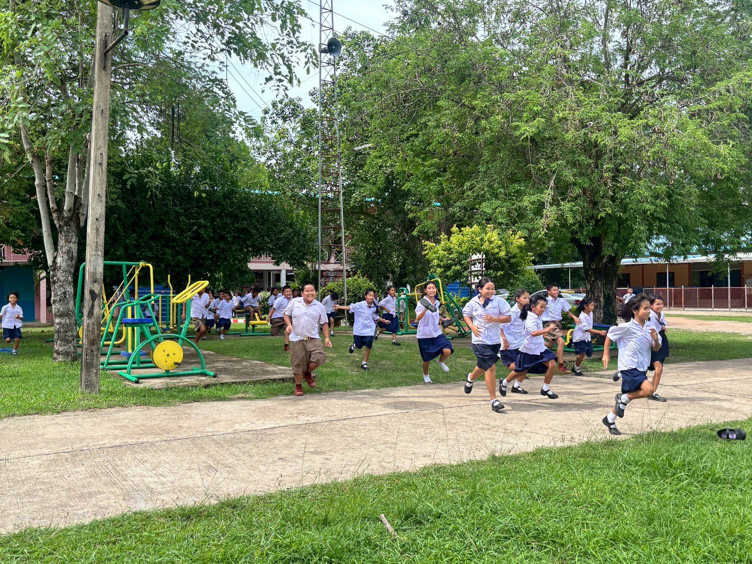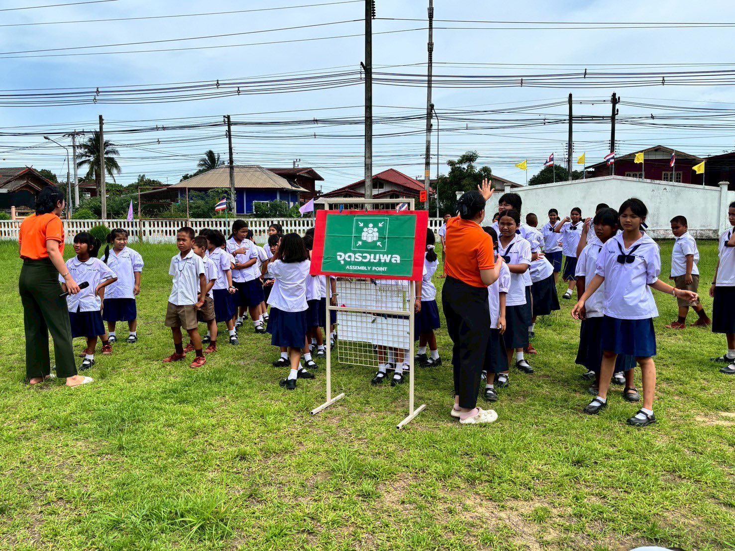 เช่น หน้าต่าง หรือของตกจากที่สูง อพยพอย่างเป็นระเบียบเมื่อปลอดภัย โรงเรียนให้ความสำคัญกับ ความปลอดภัยเป็นอันดับแรก “ร่วมมือ รู้ทัน รับมือได้“
