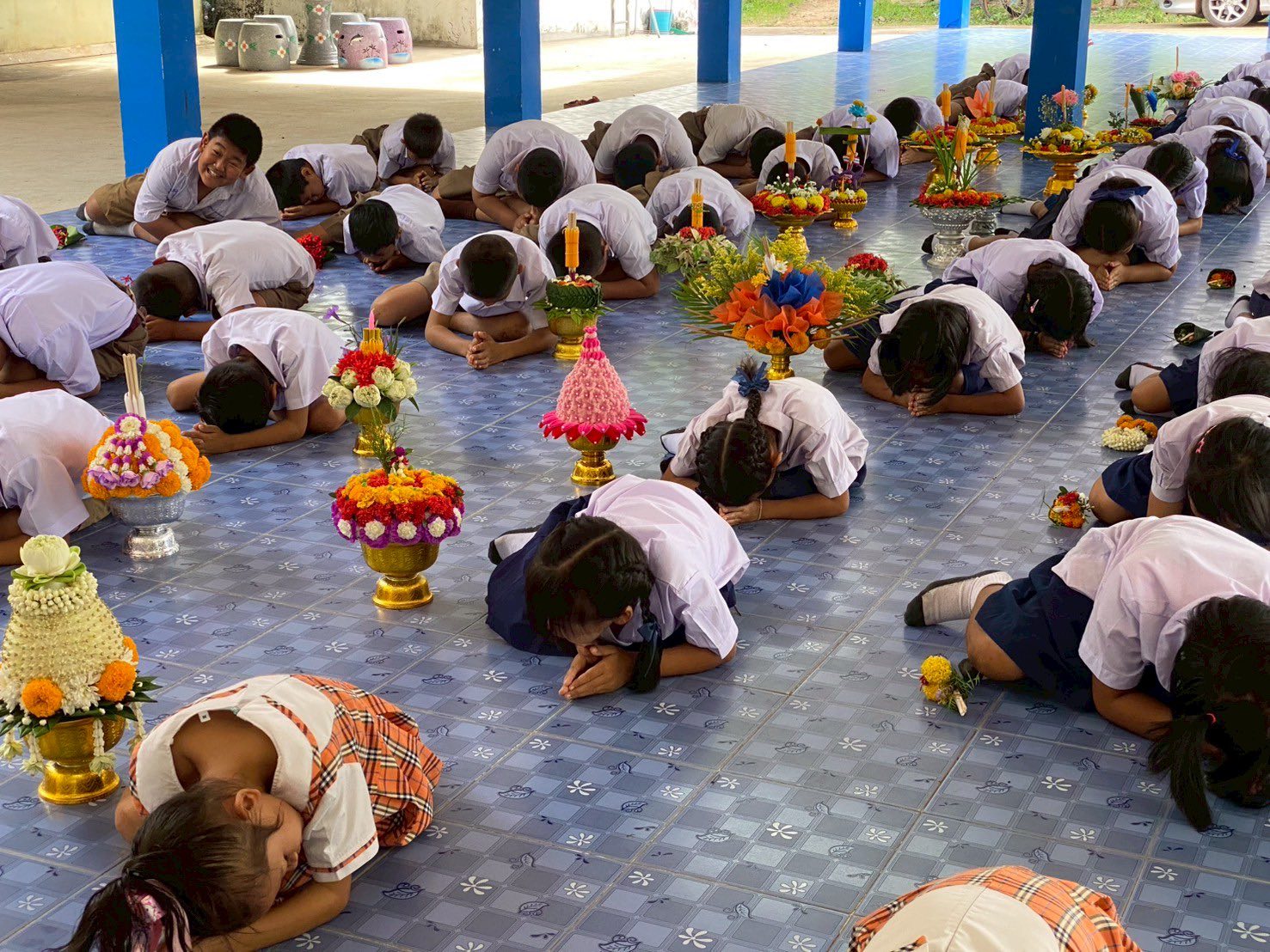 ให้รู้จักทำหน้าที่ของลูกศิษย์โดยมี นางสุจิตรา นันตะชัย ผู้อำนวยการโรงเรียนบ้านไทยสามัคคี เป็นประธานในพิธี